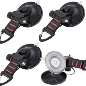 Saugnapf Haken,Verbesserter Auto Camping Zubehör,Saughaken Extra Stark,Saugnapfanker,Saugnäpfe 4 Stück Wohnmobilausstattung Camper Zubehör mit Sicherungshaken.(Rot Linie)