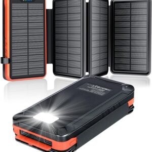 Solar Powerbank 26800mAh, elzle Solar Ladegerät mit 2 USB-A Ausgang & 1 USB-C Eingang, Outdoor Wasserfester Externer Akku mit 4 Solarpanels und Taschenlampe für Smartphones Tablets Camping